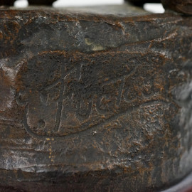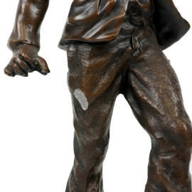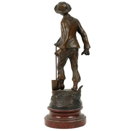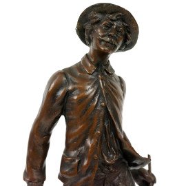 Jardinier, scultura in metallo brunito, cm h 31, firmata E. Fuchs, base in legno, (difetti)