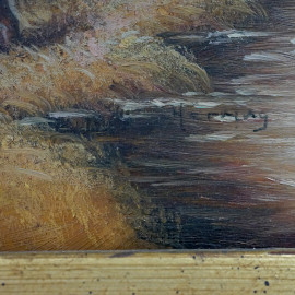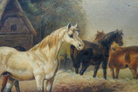 La fattoria, olio su tavola, cm 26x31, firmato, entro cornice