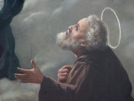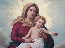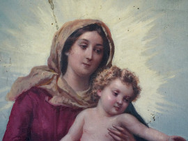 L'Apparizione della Vergine col Bambino a San Crispino da Viterbo, olio su tela, cm 77x52, inizi XX secolo, (difetti)
