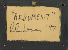 Argument, olio su legno, cm 21,5x29,3x6, 1997.