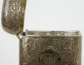 Lotto composto da due tabacchiere ed un portacerini in argento cesellato, misure max cm 7,5x5, peso gr. 100, (lievi difetti).