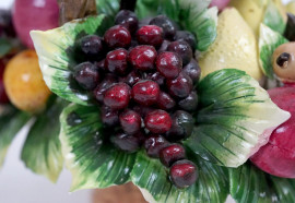 Lotto composto da tre cestini di frutta in porcellana policroma, XX secolo, altezza max cm 31, (difetti)