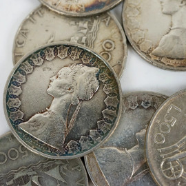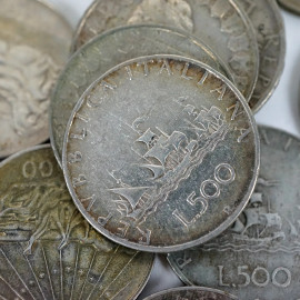 Lotto di 28 monete da 500 lire in argento, peso totale gr. 307
