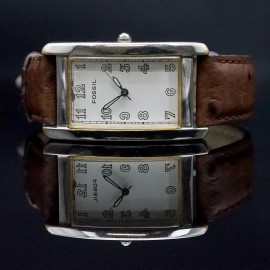 Lotto di due orologi da polso Cavalli e Fossil, cinturini azzurro e marrone, lunghezza max cm 22, (meccanismi da revisionare)