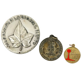 Lotto di tre medaglie, materiali ed epoche diverse, diam.max cm 5, (difetti)