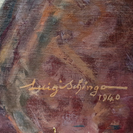 Luigi Schingo (1891-1976) Ritratto di nobildonna, olio su tela applicata su cartone, cm 56x40 , 1940.