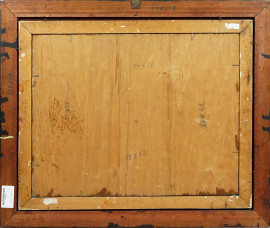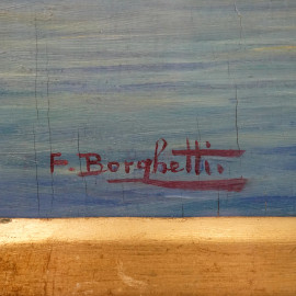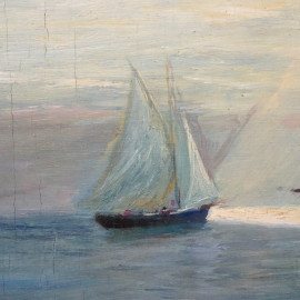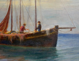 Marina con imbarcazioni, olio su tela, cm 42x53, firmato, entro cornice