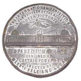 Medaglia in bronzo del 25esimo centenario del Regno della Regina Vittoria, 1862, diam.cm 6,5, (segni del tempo).