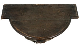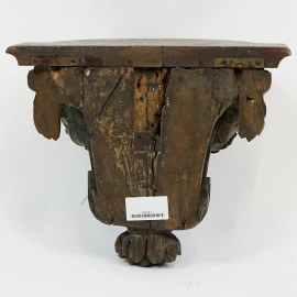 Mensola in legno massello, XIX secolo, piano modanato sorretto da trionfo di foglie d'acanto e festone, cm 31x37,5x20, (difetti)