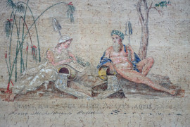 Michelangelo Politi (XIX secolo), I fiumi Ciane ed Anapo, acquaforte su papiro colorata a mano, cm 23,5x19,5, entro cornice, (difetti)
