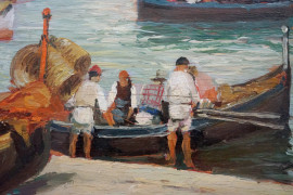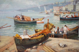 Napoli - Mergellina, olio su tavola, cm 22,5x35, firmato, entro cornice