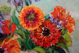 Natura morta - Vaso con fiori, olio su tela riportata su cartone, cm 55x44, firmato, entro cornice.