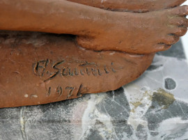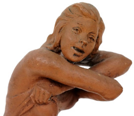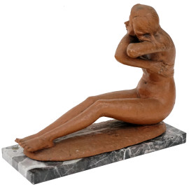 Nudo di ragazza, scultura in terracotta, cm h 17, firmata e datata, base in marmo, (lievi difetti)