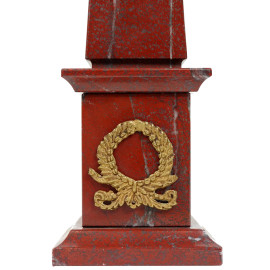 Obelisco in marmo rosso, XX secolo, cm h 43, (difetti)