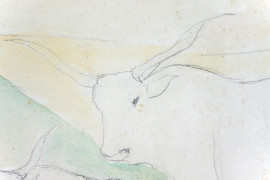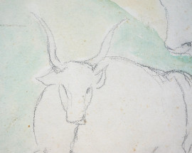 Paesaggio con mucche, matita e acquarello su carta, cm 56x76, firmato