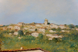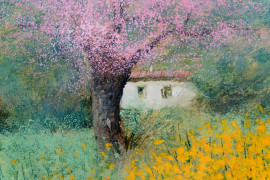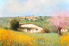 Paesaggio primaverile, olio su tela, cm 40x50, XX secolo, entro cornice