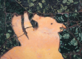 Piano ovale in commesso di marmi policromi, XIX secolo, riserva raffigurante animali mitologici (probabilmente grifone ed antilope), cm 56x48x3, (difetti)
