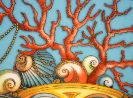 Piattino in porcellana policroma Versace, Rosenthal, serie "Les Tresor de la mer", diam. cm 18.5