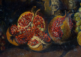 Pittore del XIX secolo, Natura morta, olio su tela, cm 53,5x85, entro cornice