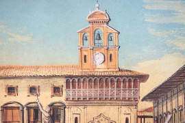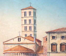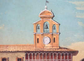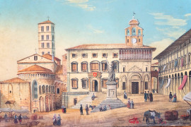 Pittore del XIX secolo, Piazza Grande - Arezzo, gouache su carta, cm 42x29, entro cornice, (lievi difetti)