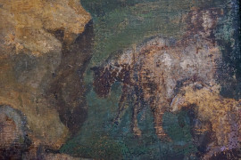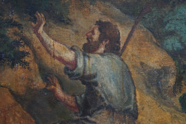 Pittore del XVII secolo, Mosè e il roveto ardente, olio su tela cm 150x111, entro cornice, (difetti)