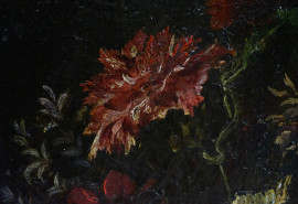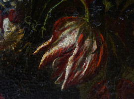 Pittore del XVII secolo, natura morta, olio su tela, cm 50,5x43,5, entro cornice