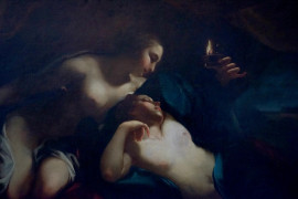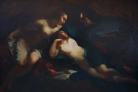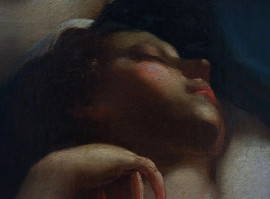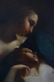 Pittore del XVIII secolo, Amore e Psiche, olio su tela, cm 150x220, entro cornice, (difetti)