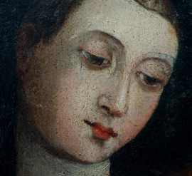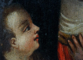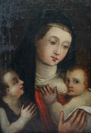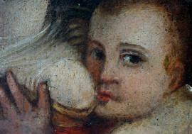Pittore del XVIII secolo, Madonna del latte, olio su tela applicata su tavola, cm 33x25,5, entro cornice, (lievi difetti)