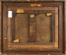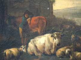 Pittore del XVIII secolo, Paesaggio con pastore e armenti, olio su tela, cm 36,5x44,5, entro cornice.