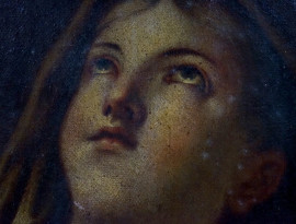 Pittore del XVIII secolo, Sacra famiglia, olio su tela, cm 73x53, entro cornice, (difetti)