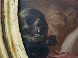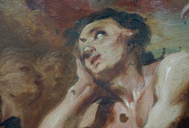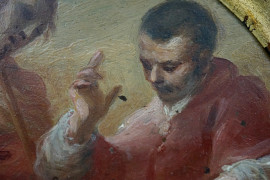 Pittore del XVIII secolo, Scena Sacra con San Giovanni Battista e San Carlo Borromeo, olio su rame ad assetto ovale, cm 16x13,5, entro cornice, (difetti)