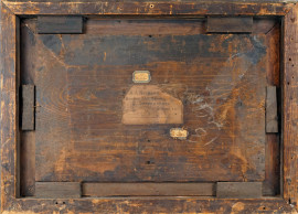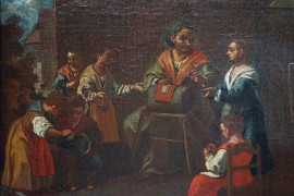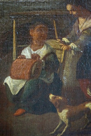 Pittore veneto del XVIII secolo, La cucitrice del tombolo, olio su tavola, cm 32x50, entro cornice.