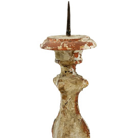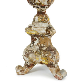 Portacero in legno intagliato, laccato e recante tracce di doratura, poggiante su tre piedini a ricciolo, XVIII secolo, cm 74x21, (difetti e restauri)
