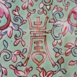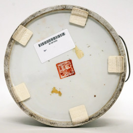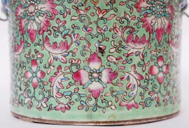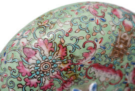 Portavivande in porcellana policroma con decori floreali, arte orientale, XX secolo, cm h 21, (difetti)