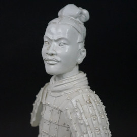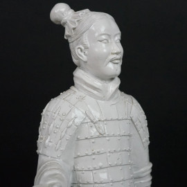 Quattro guerrieri cinesi, sculture decorative in resina bianca, XXI secolo, altezza max cm 55,5