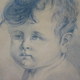 Ritratto di bambina, matita su carta, cm 50,5x41 , firmato, entro cornice, entro cornice