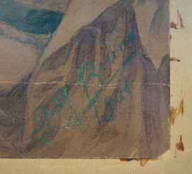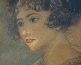 Ritratto di donna, tecnica mista su carta, cm 27x18,5, firmato, entro cornice, (difetti)