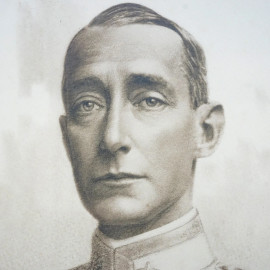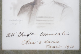 Ritratto di ufficiale, matita su carta, cm 18,5x13, firmato e datato, entro cornice