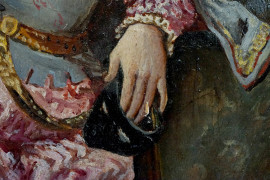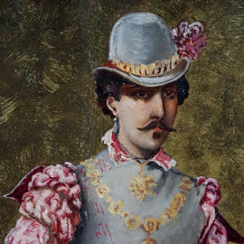 Ritratto d'uomo con spada, olio su tavola, cm 52x38, fine XIX-inizi XX secolo, entro cornice