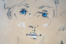 Ritratto, tecnica mista su carta, cm 55,5x45, firmato, entro cornice.