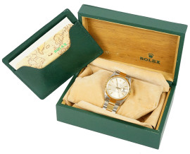 Rolex, Oyster Perpetual Datejust, orologio da polso in acciaio e oro, completo di garanzia e scatola originale, (lievi difetti, da revisionare)