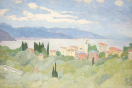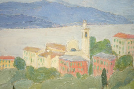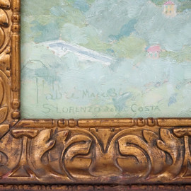 San Lorenzo della Costa, olio su cartone, cm 30x40, firmato, entro cornice.