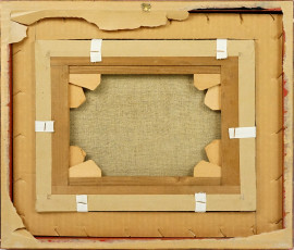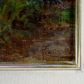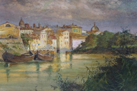 Scorcio della Roma sparita, olio su tela, cm 23,5x29,5, firmato Rasinelli, entro cornice.