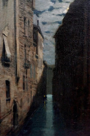 Scorcio di Canale veneziano, olio su tela, cm 40,5x21,5, firmato, entro cornice.