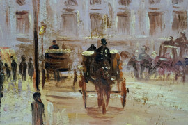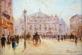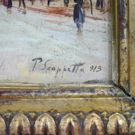 Scorcio di Parigi, olio su cartone, cm 17x24, firmato, entro cornice.