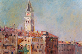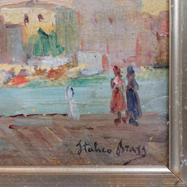 Scorcio di Venezia, olio su cartone, cm 23x32, firmato, entro cornice.