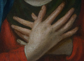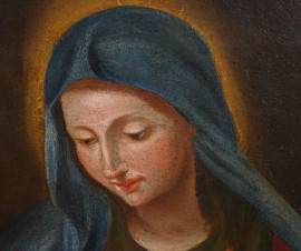 Scuola marchigiana, XVIII secolo, Vergine in preghiera, olio su tela, cm 62x49, entro cornice, (restauri)