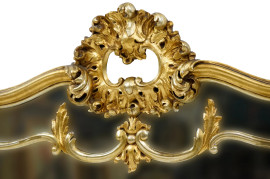 Specchiera in legno intagliato e dorato, inizi XX secolo, cm h 36x200, (difetti)