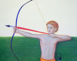 Arciere, olio su legno, cm 48,5x53,5, 1993.