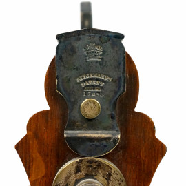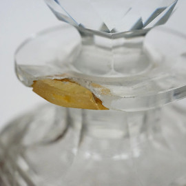 Tantalus in legno, con tre bottiglie da liquore in cristallo controtagliato, XX secolo, misure ingombro cm 33x36x13, (difetti)
